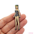 Crafted with meticulous attention to detail, our enamel pin showcases Barbie in her classic black-and-white swimsuit, reminiscent of the legendary fashion sense that made her an instant sensation. The vibrant colors and fine lines pay homage to the vintage aesthetic, transporting you back to the glamour of the 1950s.