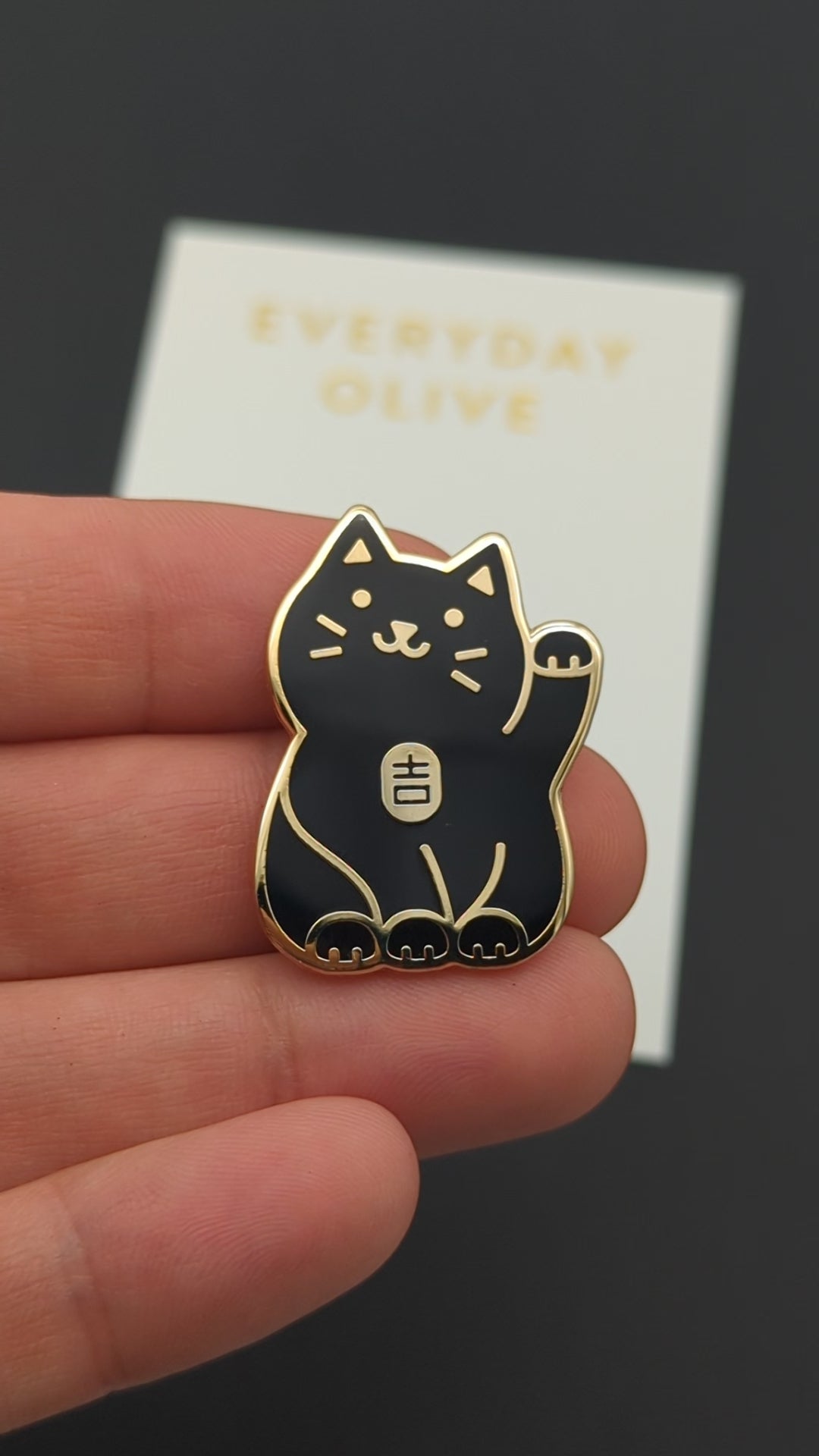 Everyday Olive - Lucky Cat Pin: Black / Gold