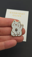 Everyday Olive - Lucky Cat Pin: White / Gold