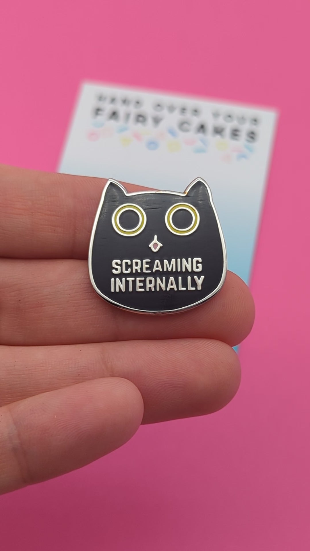Hand Over Your Fairy Cakes - Screaming Internally Cat Enamel Pin