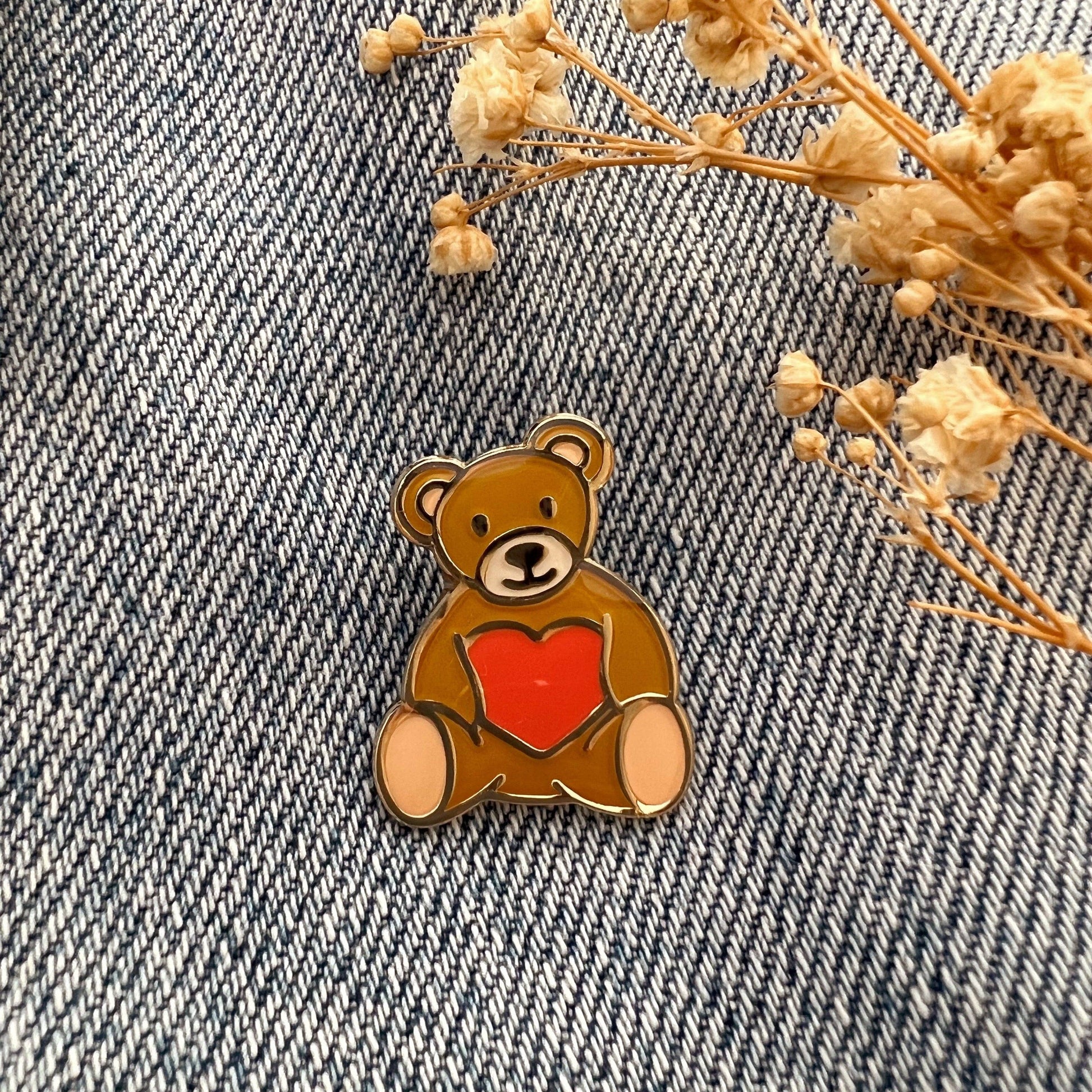 Know someone who needs a hug? Our cute little teddy bear pin is a kind gesture to let them know you're thinking of them :) Teddy bear is hugging a heart & is crafted of enamel with a clear, domed coating for a hint of 70s nostalgia. Packaged on a sweet card that softly reads, Sending Hugs. We are proud supporters of 1% for the Planet 🌎 ☆ ! Support our mother earth (〃▽〃) ♥ Measures approx. 1 1/4" ♥ Materials - enamel finished with a clear coating for a retro vibe with a soft, gold tone plating ♥ Designed by & exclusive to Kindness is Magic! ♥ Packaged on cute, "Sending Hugs" card ♥ Made in China ♥ Intended for use by adults only ♥ Includes 1 pin Daily PSA: Kindness is Magic (◡‿◡✿)