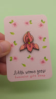 1" hard enamel pin. Packaged on paper backing cards, in cello sleeves. Smooth polished surface & rubber clutches for comfort.