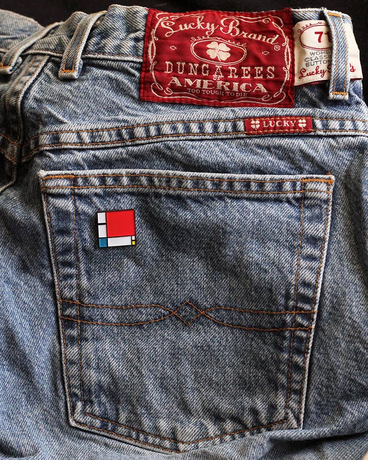 1" x 1" Soft Enamel Pin Single Posted Rubber Clasp Inspired by "Composition II in Red, Blue, and Yellow" by Piet Mondrian Piet Mondrian (1872-1944) was a Dutch painter and one of the first European artists to make non-representational paintings as part of the De Stijl, or ‘The Style’, movement. His 1930 painting "Composition in Red, Blue and Yellow" is the result of years of experimentation seeking pure simplification in painting. Its primary colors of blue, red, and yellow are gridded by thick black lines and white squares. Mondrian believed that his form of abstraction simplified the art of painting and highlighted the unique material and formal properties that only a painting could achieve. Comes packaged with Pin Museum branded backer card, and a protective polybag.