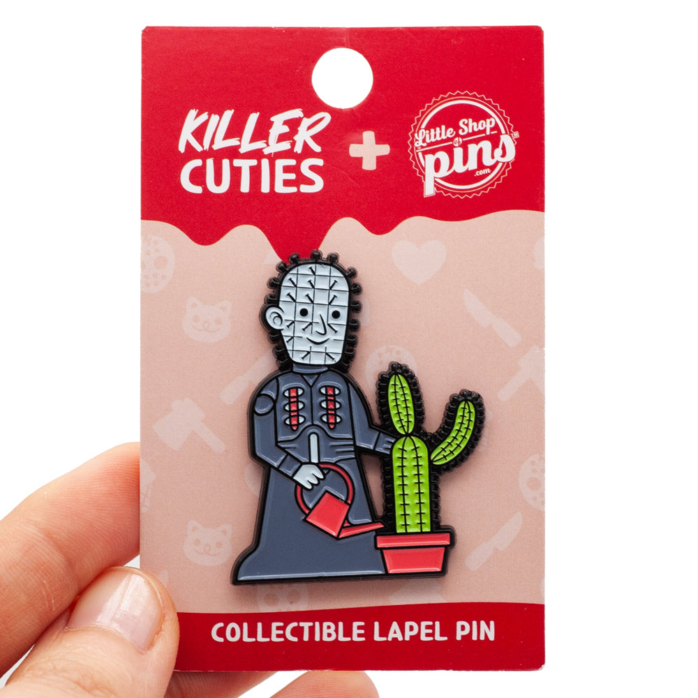 This enamel pin captures the essence of Pinhead's domestic side, where instead of chains and hooks, he's armed with a watering can and gardening gloves. With his stoic expression and a penchant for precision, he's treating his cactus like it's the most important puzzle box in his collection.