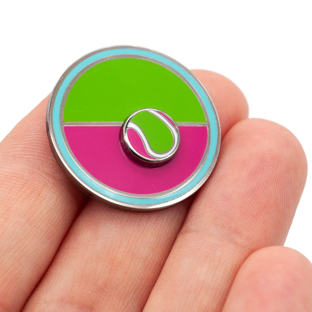 Remember those long summer days when your biggest worry was keeping the neon green and pink paddles just the right distance apart while you tried (and failed) to catch the ball? Well, get ready to relive the classic Toss and Catch game of the 90s—now in enamel pin form! Introducing the Toss and Catch Enamel Pin Set, complete with two sets of paddles and matching tennis balls, so you can throw it back to those nostalgic backyard games.